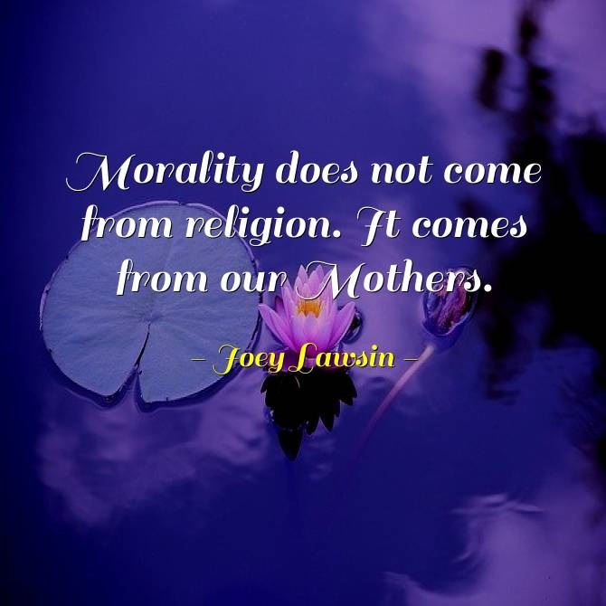 ~ “Morality doesn't come from religion; it comes from our Mother.”